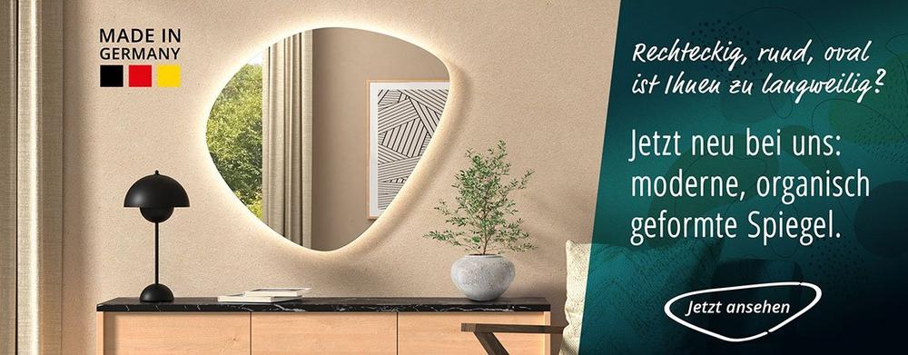 Spiegel21 bietet eine umfassende Auswahl an Spiegeln für unterschiedliche Einsatzzwecke. Vom klassischen Badspiegel über Spiegelschränke in unterschiedlichsten Dimensionen bis zu Wandspiegeln als Ausstattung für Wohn-, Schlaf- und Ankleidezimmer oder Flure bietet der Online-Shop Spiegel in 18 Kategorien – darunter auch runde Spiegel, asymmetrische Spiegel sowie stilvolle Spiegel mit Rahmen für jeden Einrichtungsstil. Alle in den einzelnen Spiegel-Kategorien vorgestellten Spiegel lassen sich zudem individuell in Maßen, Dimensionen, Geometrie und Ausstattung anpassen und werden nach individuellen Angaben in Deutschland maßgefertigt. Insgesamt bietet der Spiegel21-Onlineshop mit über 80 individuellen Optionen Millionen unterschiedlicher Kombinationen und damit eine Produktvielfalt, die kein stationärer Händler vorhalten kann.