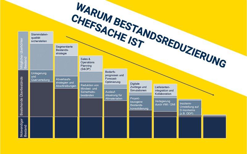 Was auf den ersten Blick nach Sicherheitsreserve aussieht, ist oft Symptom tieferliegender Probleme. Hohe Bestände entstehen, wenn Prognosen in volatilen Märkten versagen, Transparenz über die gesamte Supply Chain fehlt oder Prozesse ineffizient laufen – „etwa durch Überproduktion oder lange Rüstzeiten“, erläutert Christian Schaller. Hinzu kommen reaktive Entscheidungen, die kurzfristig entlasten sollen, langfristig aber Kapital binden und neue Engpässe schaffen.