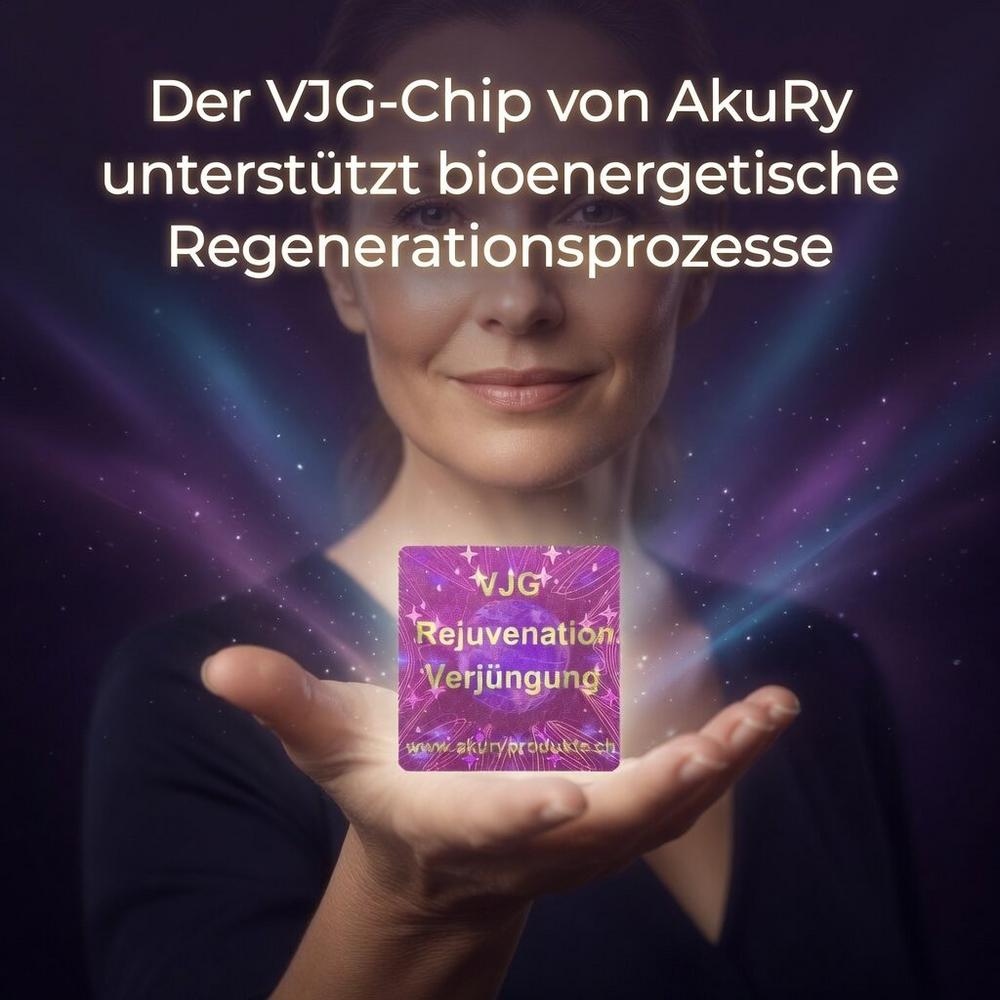 Der VJG-Chip wurde entwickelt, um die körpereigenen Erneuerungs- und Regenerationsprozesse zu harmonisieren. Basierend auf dem Prinzip der Bioresonanz überträgt er spezifische, harmonisierende Informationen, die den Energiestoffwechsel der Zellen optimieren sollen.