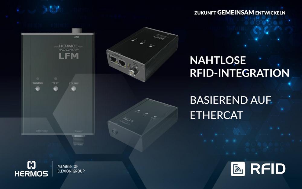 Der HERMOS RFID LFM LP EtherCAT Reader wurde genau für diese Anforderungen entwickelt. Dank der EtherCAT-Anbindung ermöglicht er eine besonders schnelle Datenübertragung und nahezu Echtzeit-Kommunikation innerhalb Ihrer Anlage.