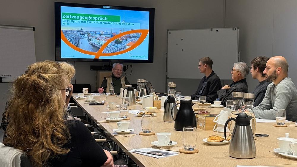 Seit der Entwicklung der Atombombe existiert die Bedrohung durch einen Atomkrieg. Für viele Menschen ist es sicher einfacher, das Thema im Alltag auszublenden. Dr. Philipp Sonntag beschäftigte sich jahrelang professionell und persönlich mit dem Ernstfall: dem Abwurf einer Atombombe in Deutschland. Dennoch bleibt er positiv. Im Zeitzeugengespräch auf Einladung der "freiwilligen im Unionhilfswerk" und der Zeitzeugenbörse e.V. erzählte er über seine Arbeit und wie er dabei nicht verzweifelt.