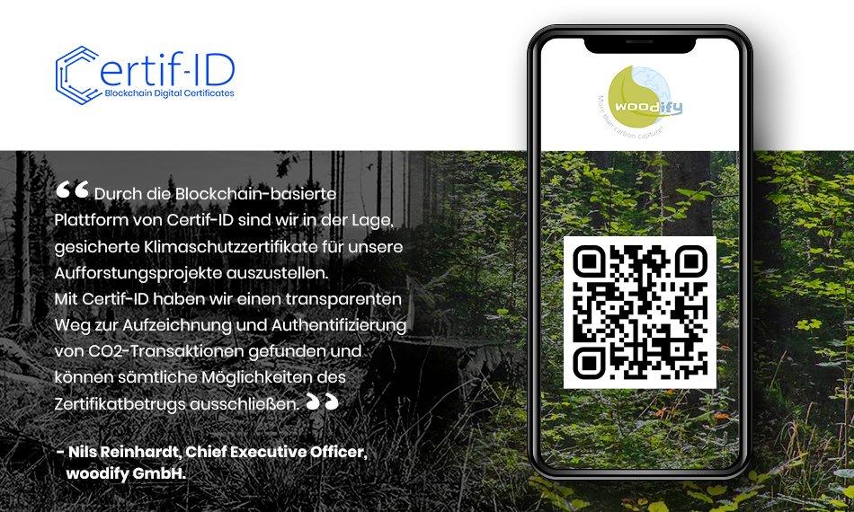 - 			woodify entscheidet sich für Blockchain zur Ausstellung von digitalen CO2-Zertifikatenwoodify ist ein Unternehmen, das Ökosystemleistungen liefert, indem es geschädigte Monokultur Wälder in natürliche Mischwälder umwandelt und Wirtschaftswälder vor Entnahme von Biomasse schützt. Zusätzlich schafft woodify neue Flächen für unsere Umwelt, um natürliche Wälder auf zuvor ungenutzten Boden zu entwickeln. Die Ökosystemleistung steht dabei im Vordergrund: CO2-Bindung aus der Atmosphäre, Schaffung von Lebensraum, Bindung von Wasser, Aufbau von Boden und lokale Kühleffekte. Highlights: Transparenz und Rechenschaftspflicht für CO2-Bindung Woodify wird bis zu 100.000 Klimaschutzzertifikate pro Jahr über die Blockchain-basierte Plattform von Certif-ID ausstellen, die als Aufzeichnungs- und Verifizierungssystem für den Klimaschutz dient Betrug von Klimazertifikaten mit Blockchain verhindern Durch die Digitalisierung und Verknüpfung von Zertifikaten mit bestimmten Aufforstungsprojekten mittels Blockchain,…