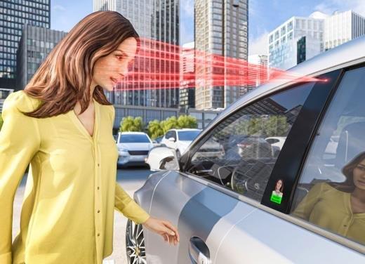 Unsichtbar hinter dem Fahrerdisplay verbaute Kamera zur Gesichtsauthentifizierung für sicheren Start und digitale Bezahlfunktionen Zusätzlich in die B-Säule eingelassene Sensorik zur biometrischen Authentifizierung entriegelt das Fahrzeug, sobald ein berechtigter Nutzer erkannt wird Neue Interaktionsebene: Nur bei Benutzung sichtbares Display im Exterieur des Fahrzeugs Continental präsentiert mit dem „Face Authentication Display“ ein zweistufiges Zugangskontrollsystem, basierend auf einer biometrischen Nutzererkennung. Dabei kommen spezielle Kamerasysteme zum Einsatz, welche im Außenbereich an der B-Säule des Fahrzeugs sowie im Fahrzeuginnenraum unsichtbar hinter dem Fahrerdisplay angebracht sind. Dank biometrischer Authentifizierung des Gesichts öffnet und startet das Fahrzeug, sobald es eine registrierte Nutzerin oder einen registrierten Nutzer erfasst. Einen Täuschungsversuch erkennt das System dank einzigartiger Lebenderkennung…