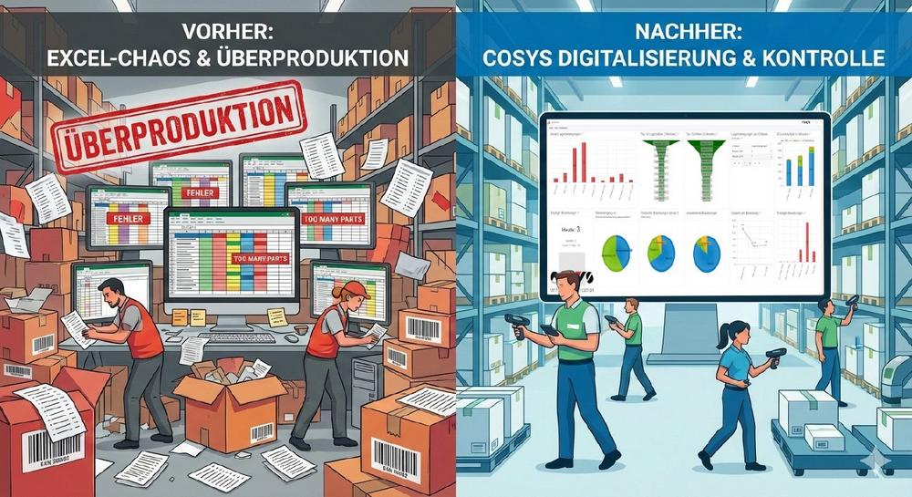 Verwaltet ein Unternehmen parallel mechatronische Ersatzteile, Roh-/Hilfs-/Betriebsstoffe (RHB), Werbemittel und IT-Equipment, entstehen schnell vier getrennte „Lageruniversen“ – mit unterschiedlichen Regeln, Verantwortlichkeiten und oft auch verschiedenen Tools. Ein zeitgemäßes Lagerverwaltungssystem führt diese Bereiche zusammen: Bestände sind aktuell, Buchungen erfolgen digital direkt am Ort der Bewegung, mobile Scans ersetzen Zettel und Nachträge, und Auswertungen schaffen Steuerbarkeit. Der folgende Use Case skizziert typische Ist-Abläufe, zeigt die häufigsten Effizienzbremsen – und beschreibt, wie COSYS mit App, WebDesk und Business Intelligence diese Anforderungen abdecken kann. Use Case: Ein Lager – viele Artikeltypen – ein gemeinsamer Anspruch Ein mittelständischer Industriebetrieb betreibt ein zentrales Lager, das mehrere interne Kundengruppen versorgt: Instandhaltung benötigt Ersatzteile aus der Mechatronik kurzfristig…