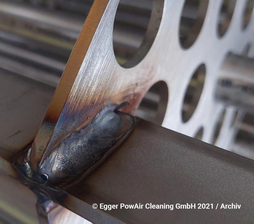 Seit Generationen von Edelstahl-Verarbeitern ist das Auftreten der ANLAUFFARBE ein alltägliches Problem. Anlauffarben entstehen bei der Herstellung von Industriemaschinen und Industrieanlagen. Durch die Hitze bei den Schweißvorgängen verfärbt sich der Edelstahl und läuft bläulich an. Das ist weiter kein Problem aber niemand kann und will die neue Maschine mit Anlauffarbe an die Kunden ausliefern. Nachstehend drei Bilder von Edelstahl mit bläulicher ANLAUFFARBE. Anlauffarben werden traditionell mit Drahtbürsten manuell oder mit Handwerkzeug entfernt. "Der Traum von jedem Auszubildenden!" "Warum soll es Euch Jungen anders gehen als mir. Wir haben tagelang Anlauffarben entfernt!", sagte ich als Meister zu den Lehrlingen. Jahrelang. Bis ein kostenloses, technisches Assessment von Firma Egger PowAir Cleaning GmbH…