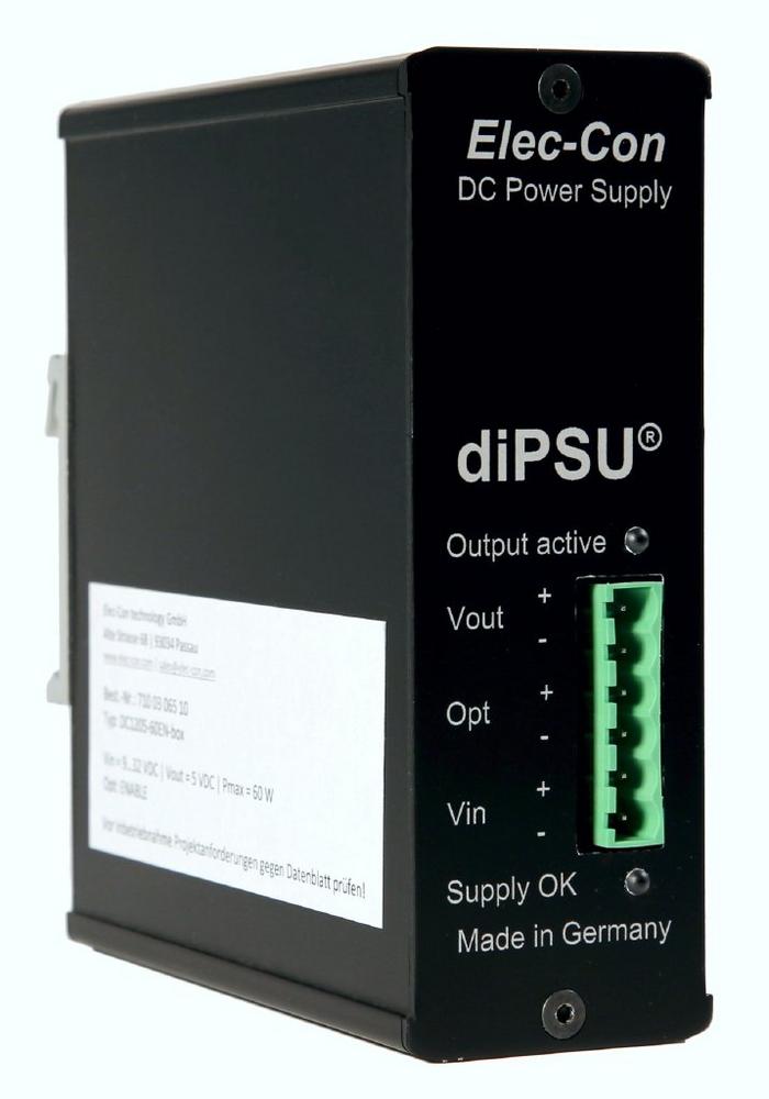 Elec-Con, Passauer Entwicklungshaus für Leistungselektronik bis 1 kVA, stellt eine Baureihe kundenspezifisch anpassbarer DC/DC-Wandler für den Schaltschrankeinbau vor. Die kompakten Geräte arbeiten an Versorgungsspannungen zwischen 8…45 V DC und erzeugen daraus jede Spannung von 1,7 V bis 75 V DC. Die in Deutschland gefertigten DC/DC-Wandler bieten Ausgangsleistungen bis 500 W. Die Geräte der Baureihe diPSU erzeugen aus einer Eingangsspannung zwischen 8 und 45 V DC jede gewünschte Ausgangsspannung von 1,7 bis 75 V DC. So machen die nur 42 mm breiten, 120 mm hohen und 104 mm tiefen Geräte aus instabilen Versorgungsspannungen mit schwankenden Eingangsspannungen eine konstante Ausgangsspannung für empfindliche Elektronik. Zum Einsatz kommt diese Lösung, wenn etwa dezentrale Schaltschränke…