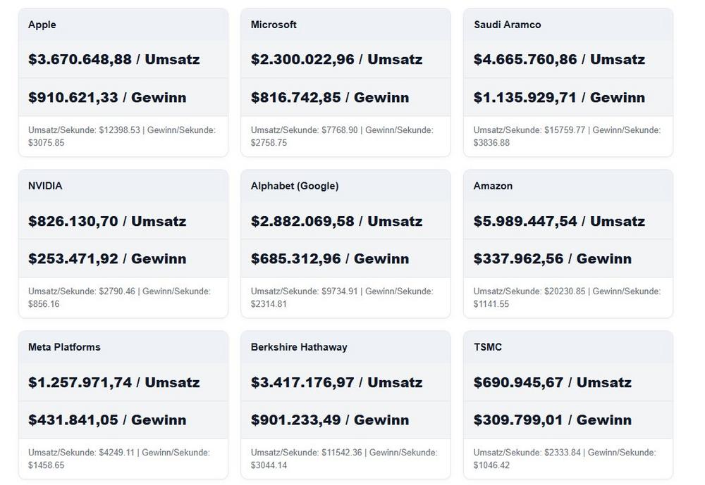Während Sie diesen Artikel lesen, erwirtschaften die größten Unternehmen der Welt Gewinne – Sekunde für Sekunde. Der Rhythmus der Weltwirtschaft ist stetig, getrieben von Märkten, Algorithmen und Kapitalströmen, die sich ununterbrochen bewegen. In jeder Sekunde entstehen Umsätze, Dividenden, Kursgewinne – und sie fließen an jene, die Anteile an diesen Unternehmen besitzen. Was sonst abstrakt klingt, lässt sich heute in Echtzeit beobachten: Kapitalismus als permanenter Prozess. Eine Uhr, die nicht die Zeit misst, sondern die Geschwindigkeit, mit der wirtschaftlicher Wert entsteht und verteilt wird. Die Logik permanenter Wertschöpfung Das Prinzip ist einfach: Kapital, das investiert ist, arbeitet – immer. Unternehmen wie Apple, Microsoft, Alphabet, Nestlé, LVMH, Procter & Gamble oder Amazon…
