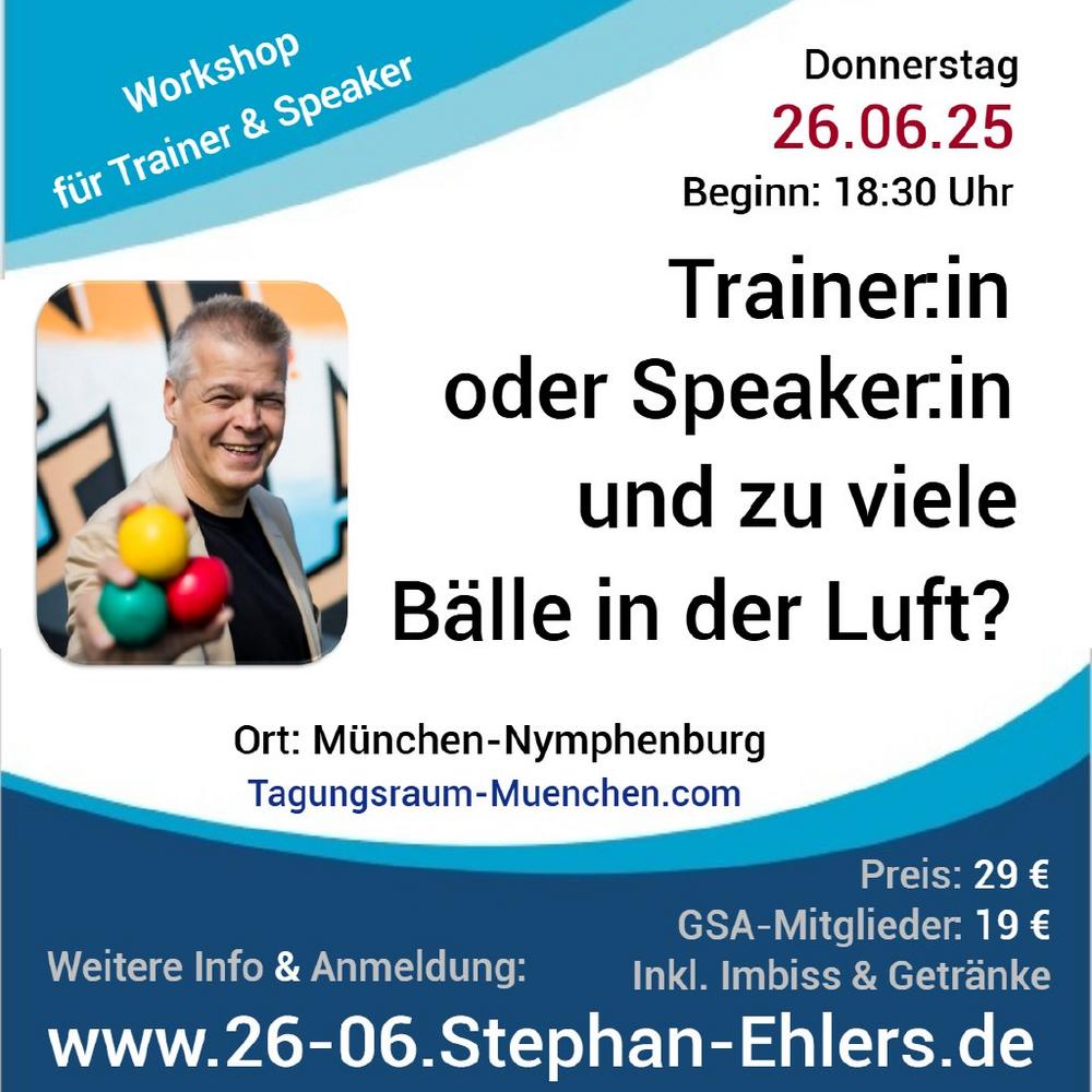Wer als Trainer:in oder Speaker:in langfristig erfolgreich sein will, braucht mehr als nur gute Inhalte – er oder sie muss die Kunst beherrschen, viele „Bälle“ gleichzeitig in der Luft zu halten: von Sichtbarkeit und Angebotsgestaltung über Akquise bis hin zur eigenen Bühnenpräsenz. Am Donnerstag, den 26. Juni 2025 – 18 Uhr, lädt der erfahrene Speaker, Jongleur und Trainer Stephan Ehlers zu einem besonderen Impuls-Abend in die FQL-Akademie nach München ein. In diesem 90-minütigen Workshop-Format gibt Ehlers nicht nur einen unterhaltsamen Einblick in seine fast 30-jährige Karriere – er vermittelt auch wertvolles Praxiswissen rund um Positionierung, Marketing, Auftritt und Tools, die im Trainings- und Speaker-Business wirklich funktionieren. Das Besondere: Die Teilnehmenden lernen ganz…