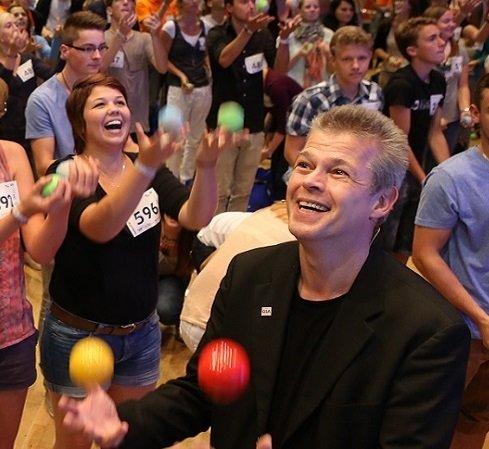 Jonglator Stephan Ehlers gelingt Doppel-Weltrekord beim weltweit größten Jonglierkurs in Neuss