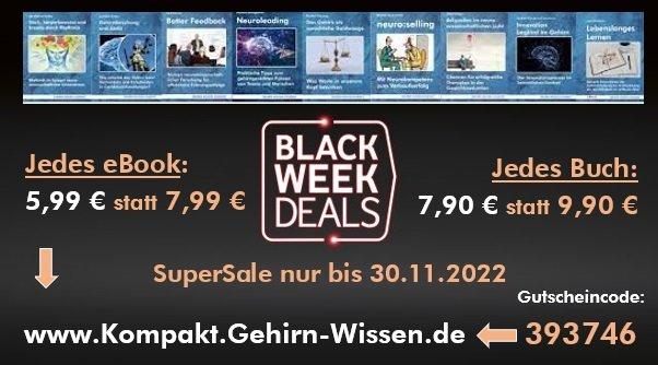 Der Mensch kann Probleme lösen, erinnert sich an Vergangenes, plant sein Handeln und ordnet Neues bestehendem Wissen zu. Wenn wir denken oder fühlen, verändert sich unser Gehirn. Die Formung des menschlichen Gehirns ist ein lebenslanger Prozess und endet niemals. Genauso ist es mit den aktuellen Erkenntnissen der Gehirnforschung. Täglich kommen neue, spannende hinzu. Der Münchner Verlag FQL Publishing präsentiert in seiner Buchreihe GEHIRN-WISSEN KOMPAKT 15 interessante Titel. In der Black-Week-Woche bis 30.11. ist jedes Buch für nur 7,90 € (statt 9,90 €) und jedes eBook für 5,99 € (statt 7,99 €) erhältlich. Der Verlag konnte ausgewiesene Experten gewinnen, die insbesondere praktische Anwendungen aus den unterschiedlichsten Bereichen in Verbindung mit aktuellen…