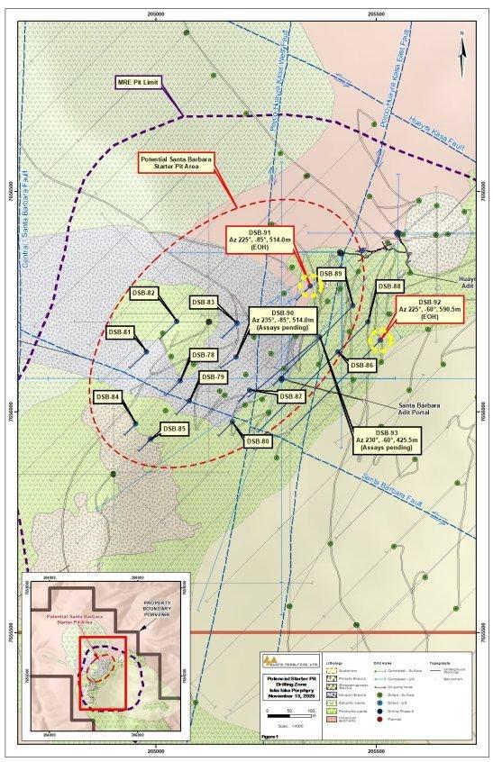 – Die potenzielle Startergrube in der Zone Santa Barbara ist weiterhin seitlich und neigungsabwärts offen, wobei die Definitionsbohrungen weiterhin lange und höhergradige Abschnitte liefern. Zusätzliche Infill- und Step-out-Bohrungen bieten ein erhebliches Potenzial für die weitere Erweiterung und Aufwertung der Mineralressourcen für die geplante PEA. – DSB-92, ein Step-Out-Bohrloch , das 50 m südöstlich des Entdeckungsbohrlochs DSB-88 gebohrt wurde, , durchteufte 90,00 Meter mit einem Gehalt von 61,05 g/t Silber (Ag) und 0,20 % Zinn (Sn), beginnend bei 492,30 m, einschließlich: 15,00 Meter mit einem Gehalt von 173,30 g/t Ag, 0,15 % Sn und 1,59 g/t Gold (Au), beginnend bei 517,80 m, und 49,50 Meter mit einem Gehalt von 50,14 g/t Ag und 0,26 % Sn, beginnend bei…