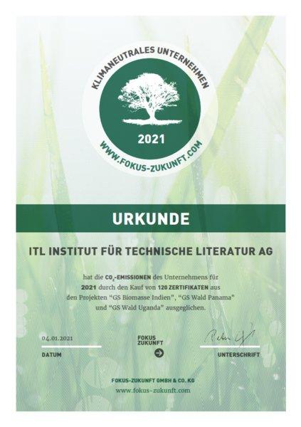itl ist auch im Jahr 2021 ein klimaneutrales Unternehmen