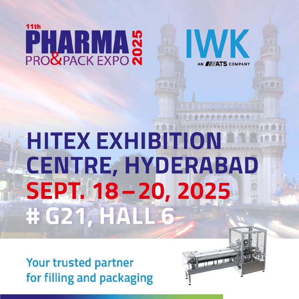 IWK Packaging Technology is proud to announce its first-ever participation at Pharma Pro&Pack Expo, taking place from September 18 to 20, 2025, at the HITEX Exhibition Centre in Hyderabad, India. Visitors are invited to meet the IWK team in Hall 6, Booth G21, where the company will showcase its advanced packaging technologies tailored to the pharmaceutical, biopharmaceutical, and medical industries. As a trusted partner in filling and packaging, IWK stands for compact, high-performance systems that combine precision, modularity, and energy efficiency. The company’s solutions are designed to meet the increasing demands of modern healthcare packaging—efficient, sustainable, and space-saving. Packaging Technology in action At the booth, IWK will present its VI…