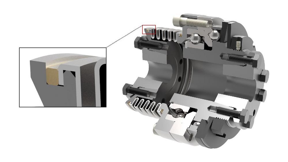 Bei der Herstellung von Metallbalgkupplungen sind die Verbindungen von Balg und Nabe ein kritischer Punkt. Während Stahl- bzw. Edelstahlkupplungen mit einem speziellen Micro-Plasma-Schweißverfahren verbunden werden können, ist diese Methode bei Kombinationen von Aluminium und Stahl nicht geeignet. Hier können Klebeverfahren zum Einsatz kommen, die allerdings bei extremen Betriebsbedingungen (Chemikalien, sehr hohe oder niedrige Temperaturen) versagen können. Speziell bei Kupplungen auf der Eingangsseite eines Planetengetriebes kann es bei kritischen Anwendungen zu hohen Temperaturen kommen, welche die Klebeverbindungen lösen könnten. Das von JAKOB entwickelte und lange Zeit patentierte Fügeverfahren (Bördel-Einpressverfahren) hingegen ist optimal geeignet um mehrlagige Edelstahlbälge spielfrei mit Aluminiumnaben zu verbinden. Der eingepresste Kupferdraht ist unempfindlich gegen Umwelteinflüsse. Hier ist der…