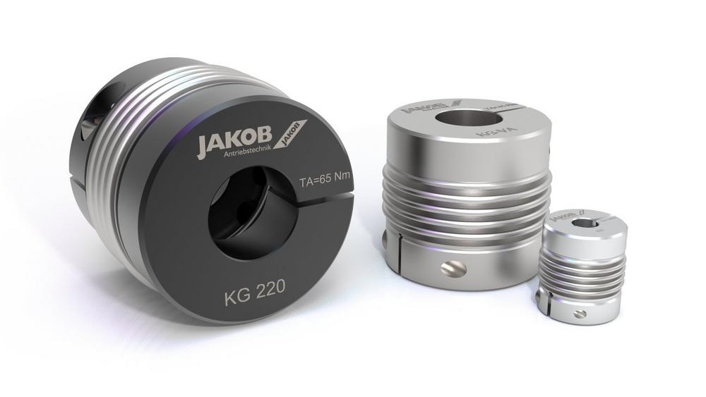 Balgkupplungen dienen der Verbindung zweier Wellenzapfen, beispielsweise von Motor und Getriebe einer Antriebseinheit. Sie müssen torsionssteif, flexibel, leicht montierbar, wirtschaftlich, präzise und sehr belastbar sein. Diese Anforderungen erfüllen die Balgkupplungen mit Innenverzahnung von JAKOB Antriebstechnik. Gerade bei Getrieben ist die Wellen-Nabe-Verbindung über eine Kombination aus Klemmnabe und Verzahnung von Vorteil, da sie eine sehr geringe Unwucht hat. Sie eignet sich weiter bestens für große einseitige, aber auch für wechselnde und stoßhafte Drehmomente. Vor der Montage der Kupplung auf der Motorwelle wird die Klemmnabe elastisch geweitet. Durch Herausdrehen der Klemmschraube gegen den sogenannten EASY-Stift wird der dafür nötige Gegendruck erzeugt. Danach lässt sich die Kupplung spielend einfach auf die Welle stecken…