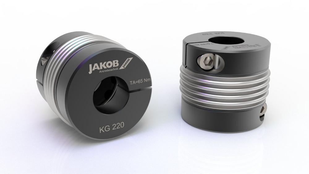 JAKOB Antriebstechnik now offers five stainless steel couplings as standard series. The metal bellows couplings KG-VA, KGH-VA and MKG-VA, the spacer coupling series WD-VA and the elastomer coupling EKM-VA. Both the KGH-VA metal bellows coupling and the WD-VA series are manufactured in the extremely easy-to-assemble half-shell hub design. Assembly and disassembly of the couplings are no longer difficult, even in cramped installation conditions. The fixed hub halves are placed on the shaft and screwed to the loose half-shell pieces. In the case of fixed shaft journals in particular, servicing can mean that the drive and/or output unit has to be laboriously dismantled, which is no longer necessary. Due to the…