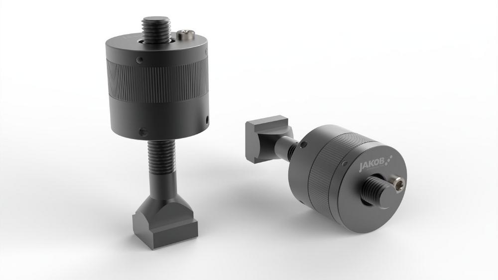 The hydromechanical spring clamping cylinders ZSF from JAKOB Antriebstechnik are robust and reliable clamping mechanisms for various areas of application. They are ideal for situations in which moving machine parts need to be temporarily fixed, such as in fixture construction or when clamping workpieces and tools. The spring clamping systems work through a combination of mechanical and hydraulic principles. The clamping force is generated mechanically by preloaded disc springs, while hydraulics are only required to loosen the elements to release the tie rod or pressure bolt. This means that the clamping force remains constantly high regardless of oil pressure or leakage losses, which increases operational safety. The pressure or pull…
