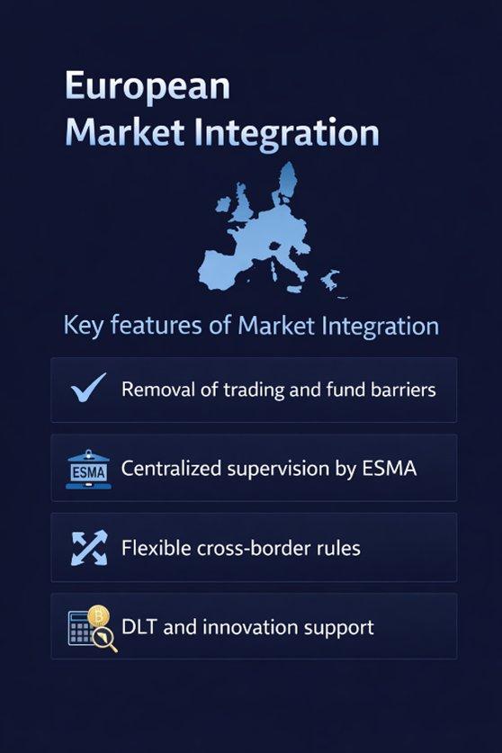 The European Commission’s Market Integration Package of 4 December 2025 is a key component of the planned Savings and Investments Union and aims for deeper integration of EU capital markets, greater efficiency and less fragmentation. The core contents of the package are: Reduction of obstacles in trading, post-trading and fund distribution (including Pan-European Market Operator, expanded passporting options, reform of MiFIR/CSDR). Greater centralization and harmonization of supervision, in particular through new direct supervisory powers of ESMA over central market infrastructures and CASPs. Adjustments to fund and depositary law (UCITS/AIFMD, EU-wide Depositary Passport) to standardize cross-border business. Promoting innovation by expanding and making the DLT pilot regime more flexible and by…
