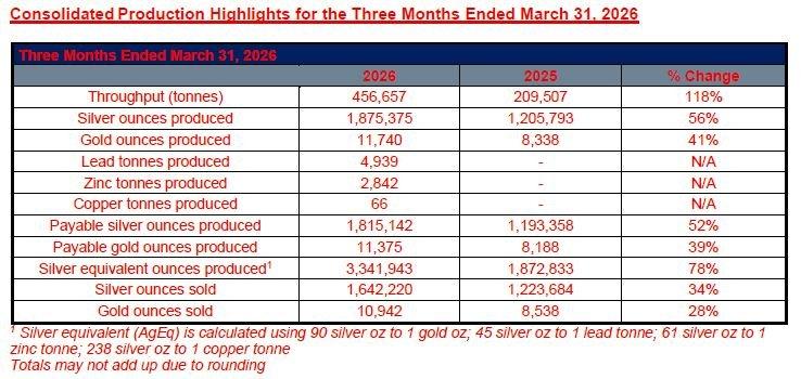 Endeavour Silver Produces 1,875,375 Oz Silver and 11,740 Oz Gold, for a total of 3.3 Million Silver Equivalent Oz in Q1 2026