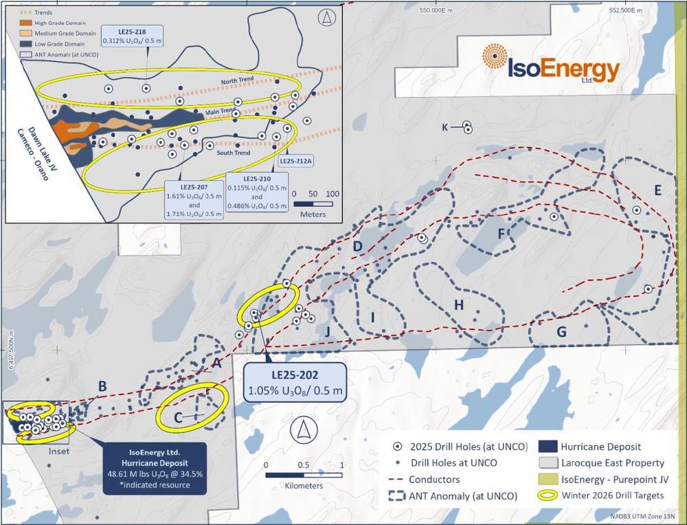 IsoEnergy Ltd. (“IsoEnergy”, or the “Company”) (NYSE American: ISOU; TSX: ISO) (- https://www.commodity-tv.com/play/isoenergy-exciting-ceo-insights-on-the-world-nuclear-association-meeting-and-corporate-update/ -) is pleased to announce the commencement of its 2026 winter exploration program on the Larocque East project (the “Project”), which hosts the high-grade Hurricane deposit, in the eastern Athabasca Basin, Canada. The program comprises approximately 5,200 m diamond drilling, up to 13 drill holes, targeting resource expansion at the Hurricane deposit as well as greenfield targets extending up to three kilometres east along trend (Figure 1). The Hurricane deposit hosts a current Mineral Resource of 48.6 Mlb U₃O₈ at 34.5% U₃O₈ Indicated, and 2.7 Mlb U₃O₈ at 2.2% U₃O₈ Inferred. The Project benefits from excellent infrastructure,…