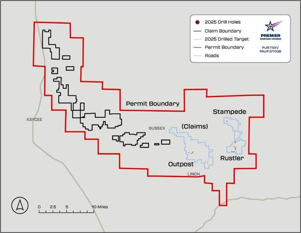 Premier American Uranium Inc. (“PUR”, the “Company” or “Premier American Uranium”) (TSXV: PUR) (OTCQB: PAUIF) is pleased to announce drill results from the 2025 drilling program at the Company’s wholly-owned Kaycee ISR Uranium Project (“Kaycee” or the “Project”) located in the prolific Powder River Basin (“PRB”) of northeastern Wyoming. The 2025 drilling campaign successfully advanced multiple targets, expanding areas of known uranium mineralization in the Outpost, Rustler, and Stampede exploration areas, each associated with major redox-controlled roll-front systems within the PRB. The Project is situated in the vicinity of several past and presently producing ISR uranium operations, including Energy Fuels Inc.’s Nichols Ranch and Uranium Energy Corp.’s Christensen Ranch ISR…